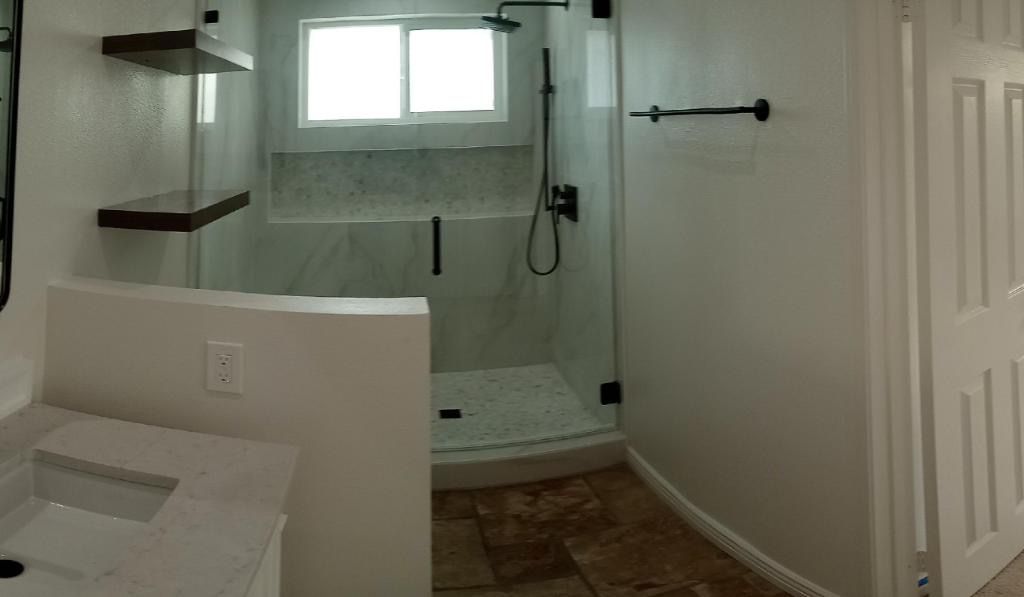 New complete bathroom, has been design with new plumbing, drain line, water line, electrical wire,